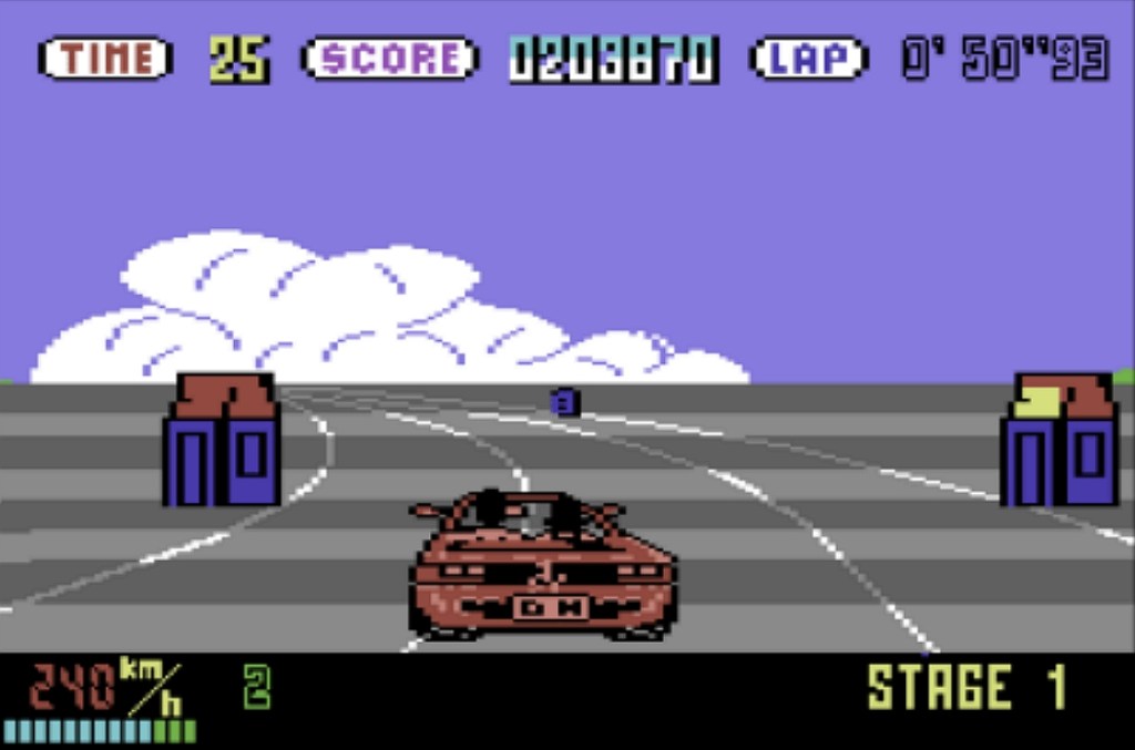 When it was revealed that OutRun would be coming to the home computers of the day, I was beyond excited. It was going to be released for the Commodore 64, we had a C64… I had to have OutRun on it. I would’ve been about 10-years-old at the time when OutRun came to the microcomputers of the day. I never really understood how gaming and ports worked back then, I was expecting OutRun from the arcade on our Commodore 64. Of course, the C64 was way too underpowered to handle an arcade-perfect conversion (which I never grasped as a kid) and when I did finally play Sega’s mighty racer on our computer… I was mildly disappointed. It didn’t really look like the arcade version, it wasn’t as fast (depending on the version) and it most definitely didn’t play as well either. Don’t get me wrong, I’m not saying that the home ports of OutRun were bad… okay, some were yes. Just more of a case that 10-year-old me didn’t understand why my C64 version didn’t look like the arcade game that I loved so much. If you look at reviews for the home ports back then, you’ll find a lot of average to slightly above average scores. I’ve been playing the C64 version of OutRun recently now as an adult, it’s really not that bad at all. Pretty damn good in fact. Of course, it is limited given the hardware but it is a fairly competent racer all told.